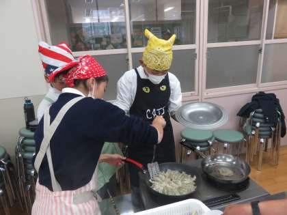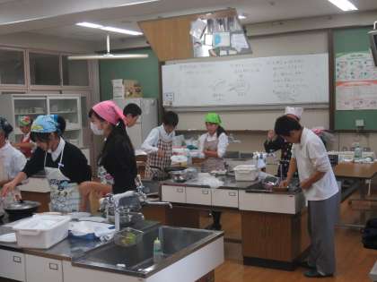 男女で手分けして調理をすすめていきます。さっぼっている人は,いません。
