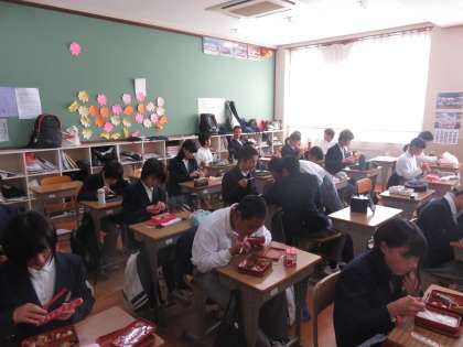 班ごとで昼食をとる学級や自分の座席でとる学級など様々です