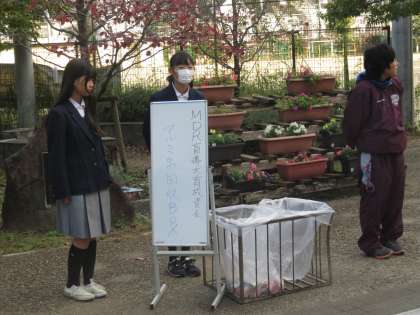 生徒会がアルミ缶の回収運動をおこなっています