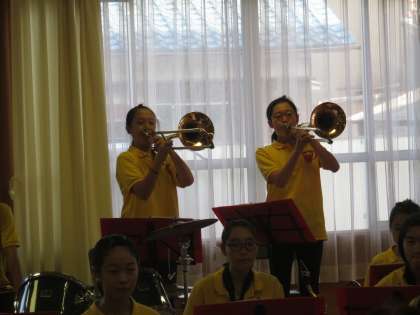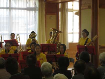 楽器紹介では,各パートの音に高齢者の方も耳を傾け楽しんでられました