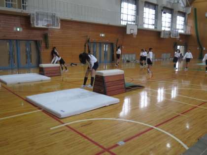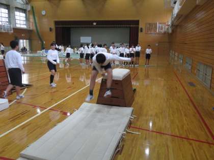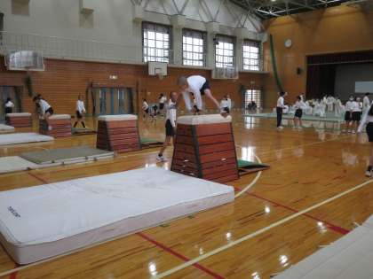 柔道の横では跳び箱に取り組んでいます