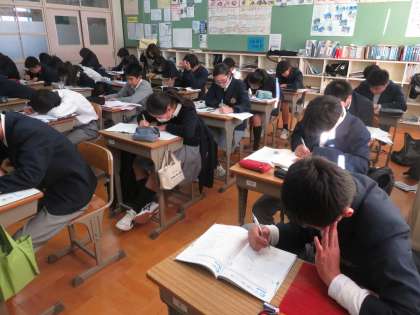 今回の放課後の自学自習では3年生は,いつも以上に真剣そのもので取り組んでいます。