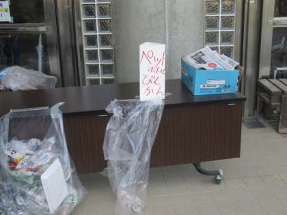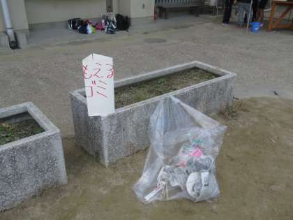 もちろんごみの分別もしっかり行います。なお,生ごみは菜園の端に穴をほって処分します。