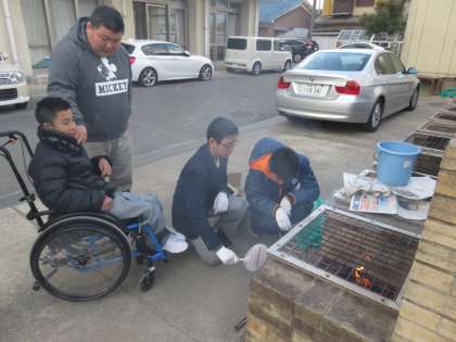 6組が菜園で収穫したサツマイモを焼き芋にしました