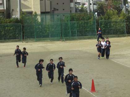 体育でも持久走でクロスカントリーに備えます