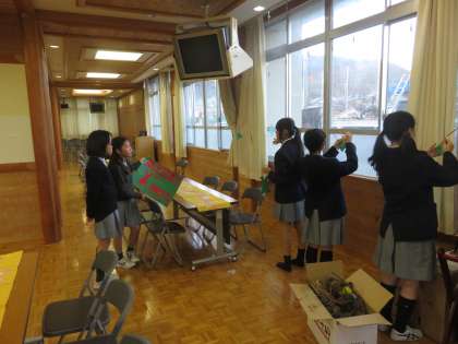 多目的室では美術部が飾り付けをしてくれています