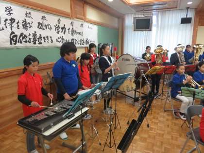 鏡山小学校・陵ヶ岡小学校・花山中学校合同バンドの演奏です。