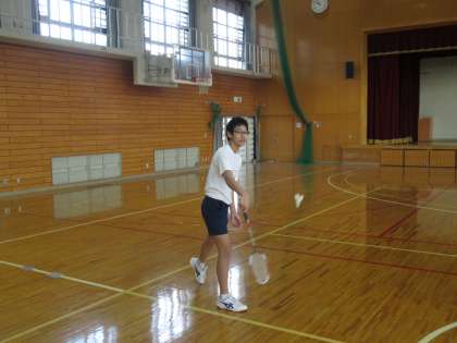 6組も体育館でバトミントンの授業です