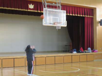 女子バスケット部も少数ながら地道に努力を続けています。」