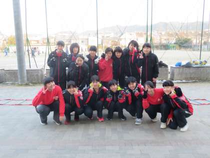 女子バレー部は朝練習前に集合写真を撮らせてもらいました。