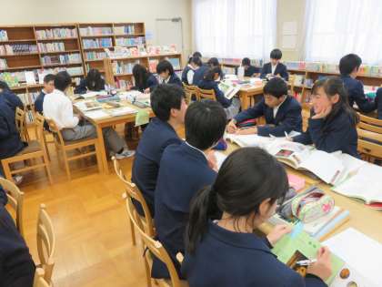 1年生の国語で図書館を活用した授業に取り組んでいます