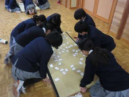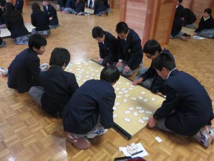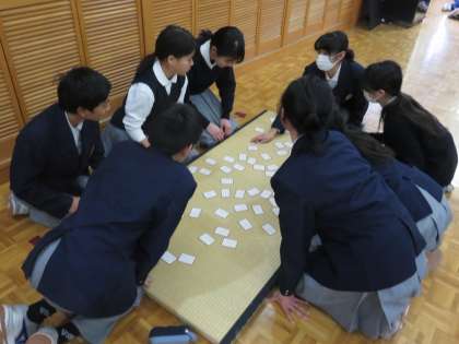 15グループに分かれて,畳を1枚引いて,取り札を並べます。