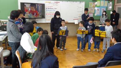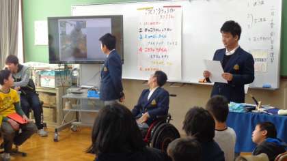 昨日2月15日(水)の午前中に花山中学校を会場にして鏡山小学校,陵ヶ岡小学校,花山中学校の育成学級の授業交流会をおこないました。