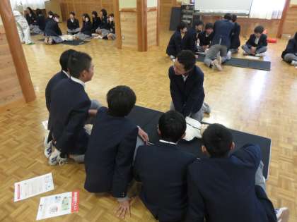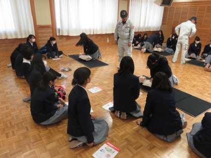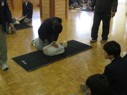 本日の3・4限に2年生が救急救命講習を山科消防署の方を講師として取り組みました。