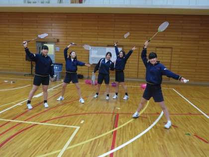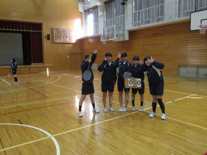 3年生女子がバドミントンの授業です。