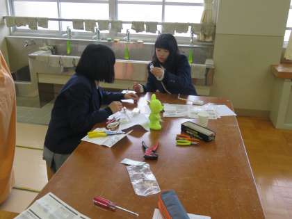 2年生が技術の授業で延長コードの製作をしています。