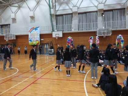 学年の合唱の前に各部活動からのビデオレターもありました。その様子は明日,UPします。