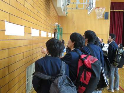 どのクラスになったか,みんな期待をもって掲示を見ます。