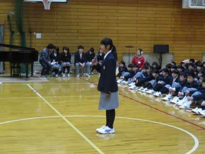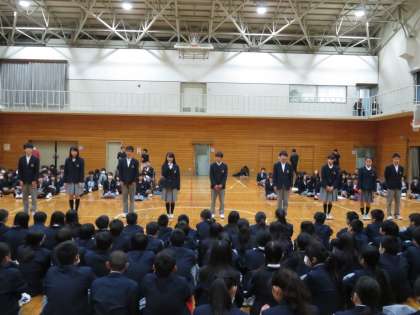 新入生から喜びの言葉が述べられ,生徒会からのオリエンテーションが行われました。