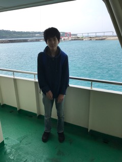 フェリーに乗って,ファームステイ先の伊江島へ向かいます。