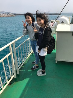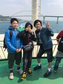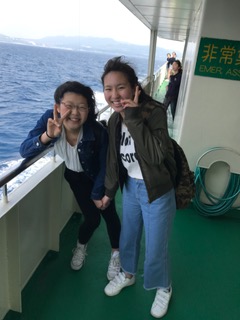 フェリーに乗って,ファームステイ先の伊江島へ向かいます。
