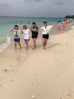ビーチでのアクティビティは、空と海の青さがまぶしいですね。
