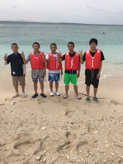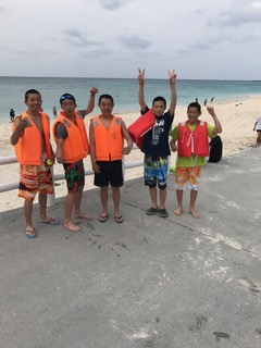 伊江ビーチの様子です。美しいビーチでのみんなの笑顔は最高。