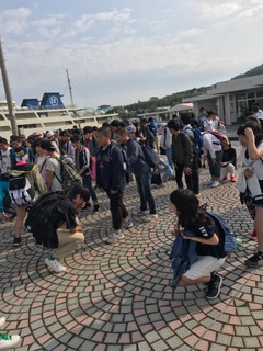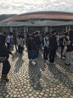 本日は、晴れのち曇り・最高気温25度。本部港 到着。全長8.7mものジンベエザメなどがいる、巨大水族館。・・・美ら海水族館に向かいます。