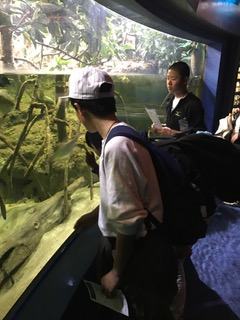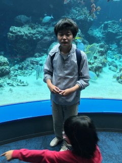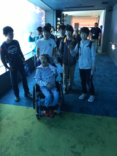 美ら海水族館に到着しました。水族館内には水量7,500m3の世界最大級の大水槽『黒潮の海』が設置されています。