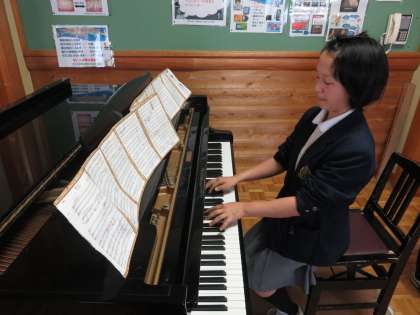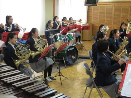 吹奏楽部はアンコールも含めて5曲演奏・合唱を披露してくれました。また新入部員も先輩たちの演奏を後ろで見守っていました。