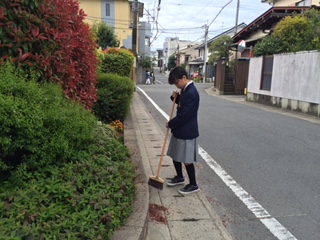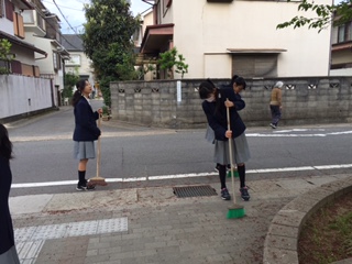 今日は、朝から気持ちよい青空が広がり、さわやかな風が肌に心地よく感じます。そんな中、朝の清掃活動が行われています。
