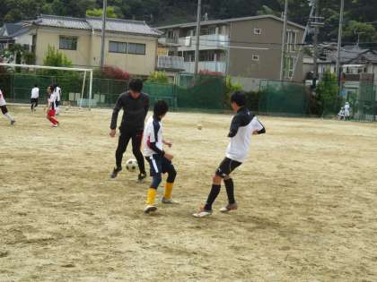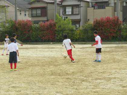 サッカー部もグランドの交代まで,狭いスペースを利用して練習です。