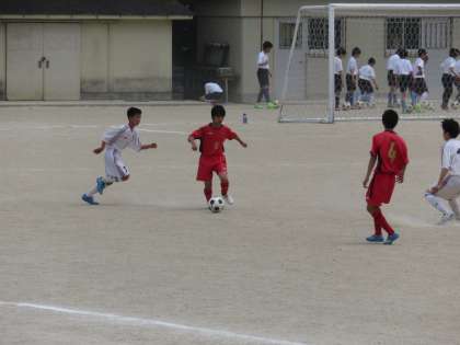 前半は両チーム無得点でしたが,後半に花山中が4点を奪い,4−1の快勝で明日の3回戦に駒をすすめました。