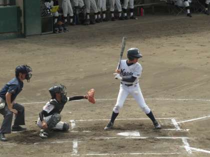 対戦は樫原中学校です。序盤は両チームともにチャンスを作るものの得点できず0−0の膠着状態が続きます。