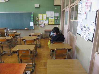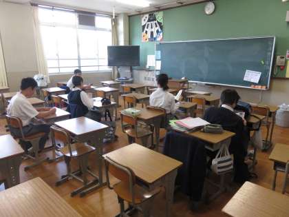 朝の教室では,今日も早朝学習をおこなう生徒がいます。