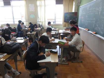 放課後学習は,通常の6限の授業終了後,基本的に全員が残って定期考査に向けての学習を行う取組です
