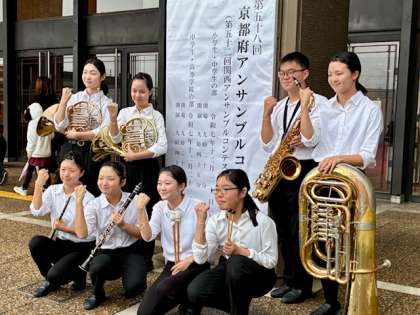 12/21(日)に行われた京都府アンサンブルコンテストにて吹奏楽部が金賞を受賞しました!思い返せば半年ほど前2年生自ら開いたミーティングに始まり、練習、オーディション、練習、再オーディション、練習、12月コンサートでの本番、練習、レッスン、練習と努力に努力を重ねてきましたね。2年生の持つ“やる気”と急成長中の“行動力”が報われたのだと思います!おめでとう!!