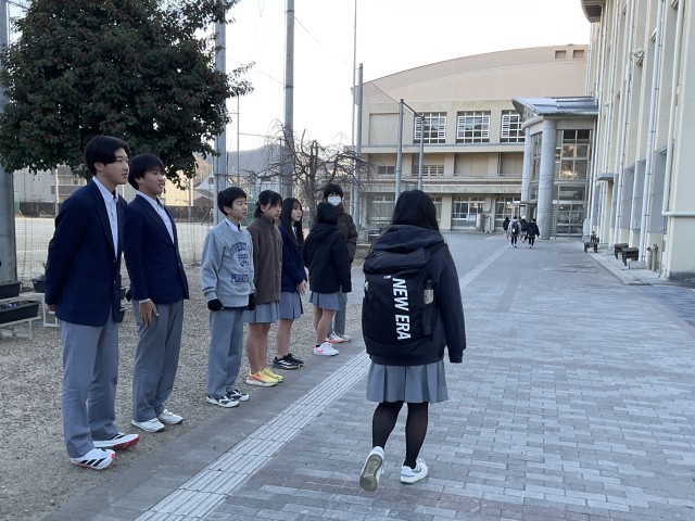 本日朝の様子です。生徒会本部の皆さんが朝から挨拶運動を行っていました。寒い中でしたが、自ら挨拶をしたり時にはグータッチをしたりと微笑ましい光景でした。いつも学校のためにありがとうございます。