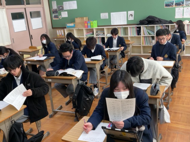 道徳の様子です。「合格通知」という、今の3年生にとってはとても身近な話題で学習をした後、1年間の振り返りを行いました。卒業式までの登校日数は24日。道徳の学習も残りわずかとなりました。1時間1時間大切に過ごしていきましょう。