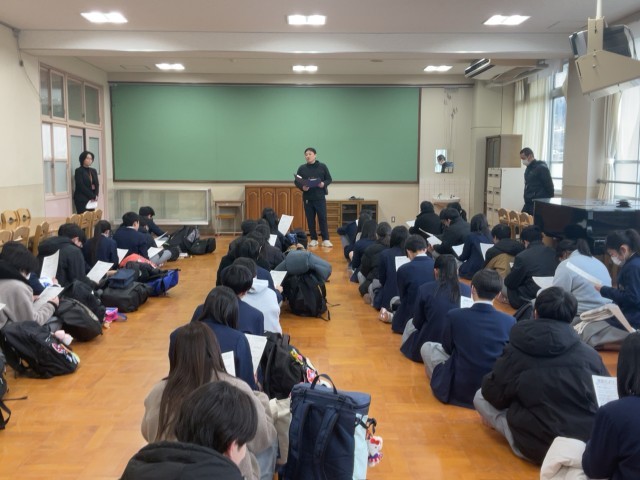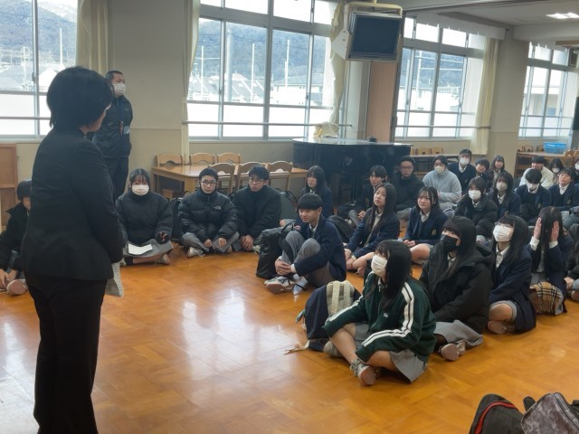 本日6限、明日から始まる京都府私立入試に向けて事前確認が行われました。明日の持ち物や注意事項、困ったときの対処などいろいろな話が行われました。明日の朝もずいぶん冷え込みます。今日の夜にしっかりと準備をして早く寝て、明日に備えましょう。がんばってください。