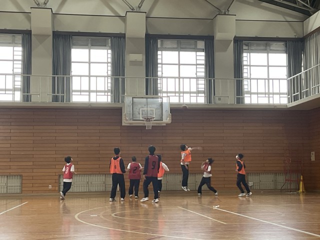 1年生保健体育の授業におけるバスケットボールの様子です。授業の終わり頃に見に行ったのですが、ものすごい活気で、誰も気を緩めることなく、手を抜くことなく、一心不乱にボールにくらいついていました。限られたゲーム時間でも、これだけ積極的に動いているので生徒達は見る見るうちに伸びていきます。空いたスペースを見つけは入り込みパスをもらったり、仲間の動きの少し先を読んでパスを回したりと、生き生きと学んでいました。
