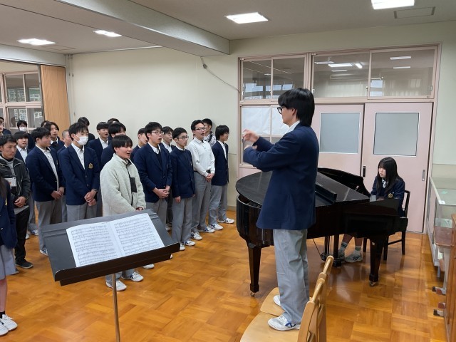 先週の様子です。卒業式に向けて指揮者伴奏者のリードの元、合唱練習を進めています。卒業式の並びも決まり、練習を重ねているところです。歌詞の言葉や声の響きに思いを乗せて、歌う人も聴く人も心が震えるような合唱を目指しましょう!