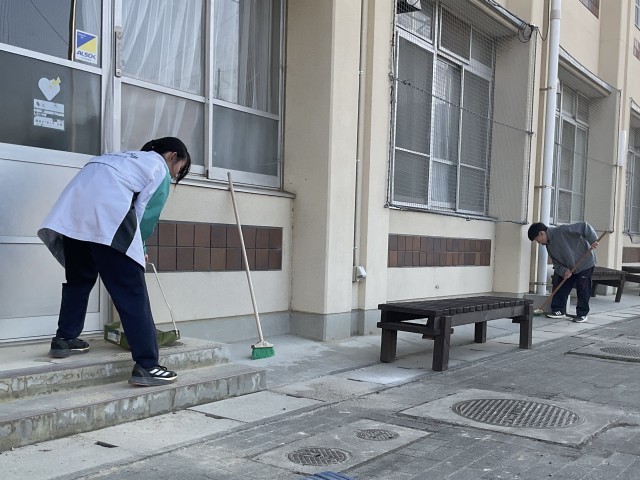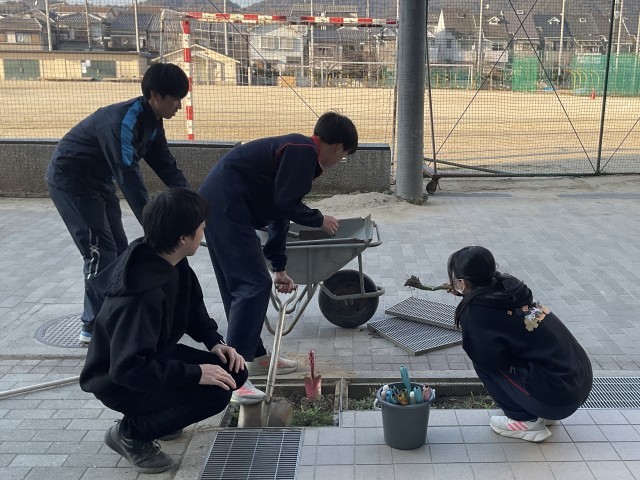 土曜日の部活動にて、陸上部2年生が校舎周りや側溝の掃除をしてくれていました。話を聞くと「前から掃除しようと声は上がっていたんです!」とのことで、やると決まったからには徹底的に、とスコップや一輪車を集め黙々と取り組んでいました。人のために動く人の姿とは、とても美しいものです。ありがとうございます。