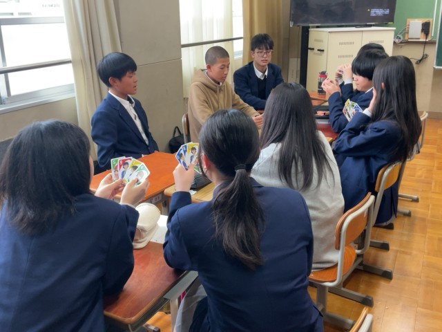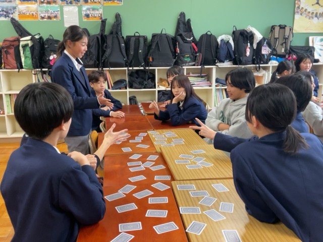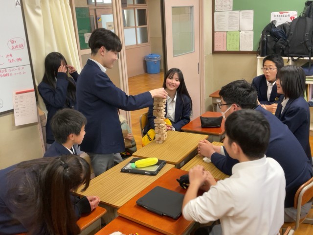 こちらはグループレクの様子です。これも2年生が考えてくれたもので、ゲームの進行も上手にやってくれました。1学期の初回たてわりから何度も顔を合わせ、収穫祭も協力しあったメンバーで行う最後のレク、どのグループもわきあいあいとした空気で楽しんでいました。