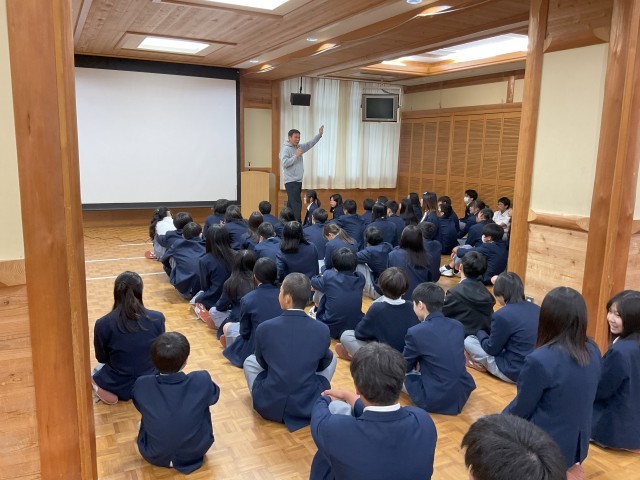 初めての学年集会。思いやりの心,折れない心,感謝の心を