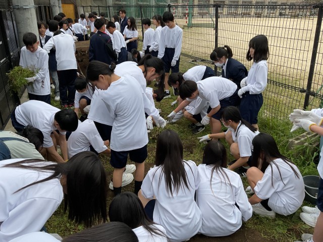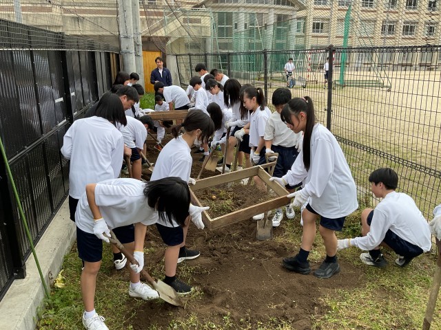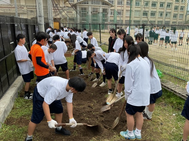 最初は雑草ばかりでしたが、みんなの協力であっという間に畝が完成しました。