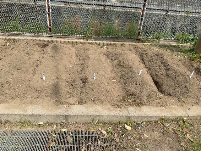 みんなの協力で立派な畝ができました。次は夏野菜の苗を植えます。