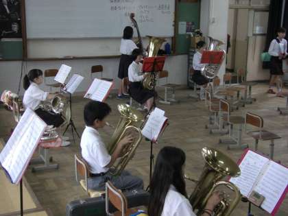 写真は水泳部、吹奏楽部、女子陸上部です。