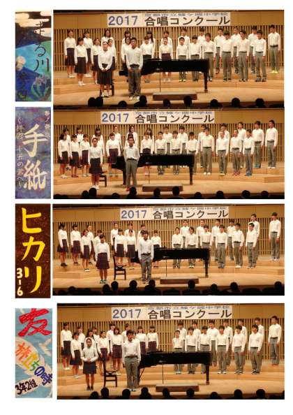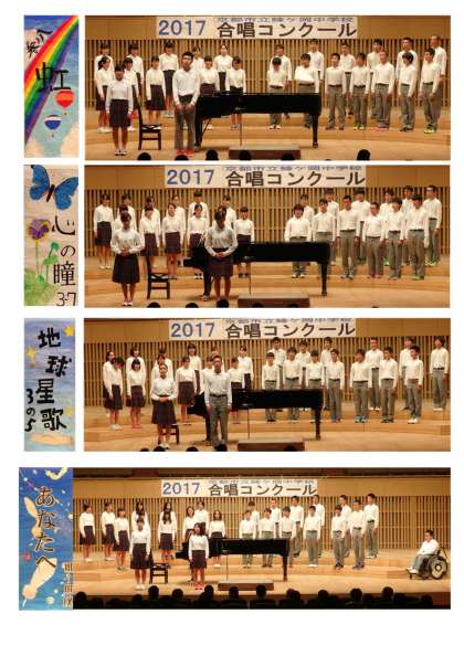 10月17日(火)京都コンサートホールで合唱コンクールを開催しました。朝方雨模様でしたが保護者の方、地域の方も早くからお越しいただき、ありがとうございました。どのクラスとも大変すばらしい合唱で、「きずく文化のいとなみに、誉れは高い蜂ヶ岡」校歌の一節にあるように文化を継承する行事になりました。特に3年生の発表は、最後のコンクールということで、すごい気迫を感じました。会場の皆さんとすてきな時間を過ごせたことをうれしく思います