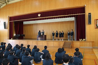 体育館で前期認証式を行いました。学級代表として意識・意欲を高め、委員会活動への活発な参加をお願いします。